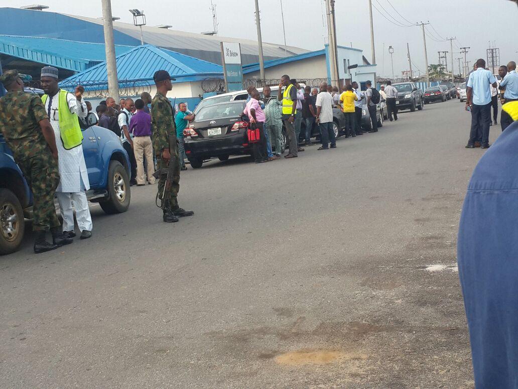 Workers, Pilots and Engineers of Bristow Helicopters had embark on Strike action today. Workers are seen outside the gate standing and discussing. Details is yet unknown. Details later...