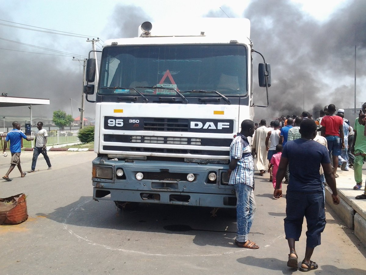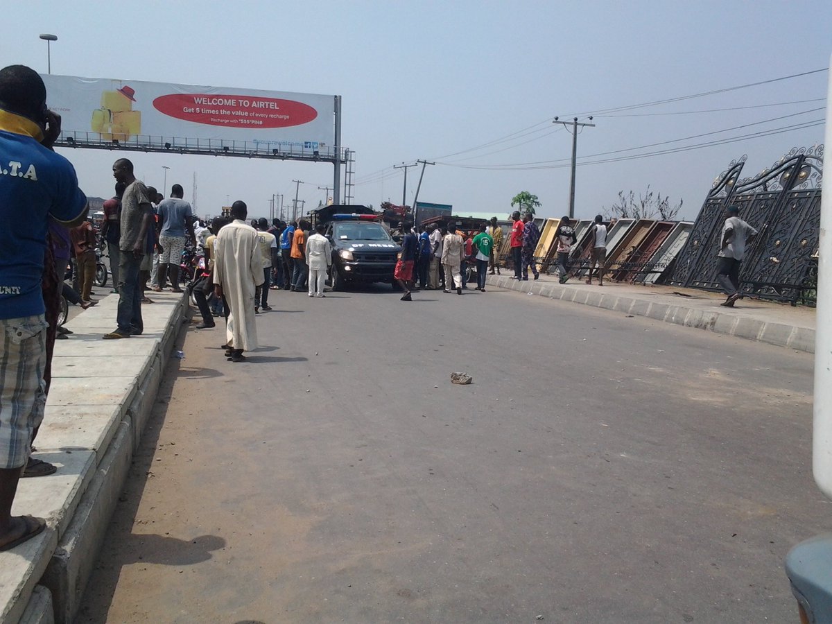 According to the motor boy Haruna, the LASTMA team and men of Nigeria Police hurriedly left the scene to avoid any mob attacks. Meanwhile the boys from the community took over the expressway burning tyres on the expressway.